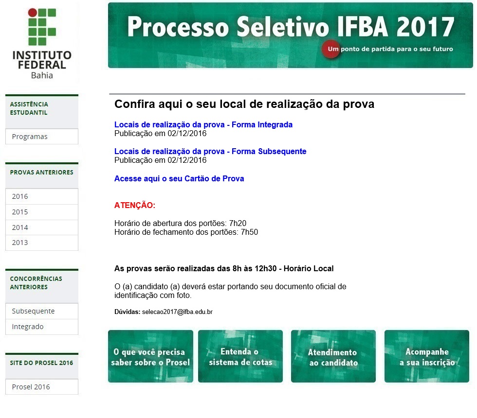 Tel.: (71) 2102-0474 / 0470 / E-mail: selecao2017@ifba.edu.br